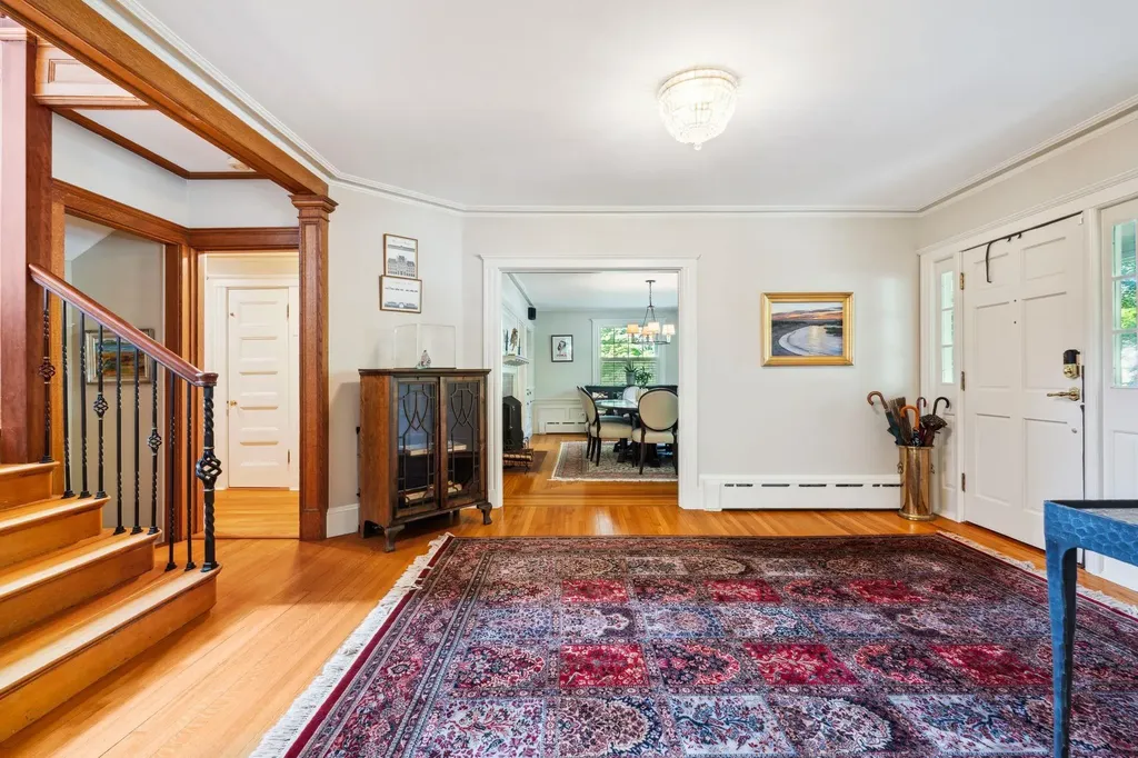 Welcome to Linden Estate, a distinguished Georgian-style residence originally presented as a marriage gift in the early 1900s. Set within the exclusive Rye Beach Precinct-just moments from the Atlantic Ocean and the prestigious Abenaqui Country Club-this storied property spans three acres of nationally recognized gardens and is anchored by New England's tallest large-leaf European Linden tree, as designated by the NH Arborist Association. Timeless in its presence yet thoughtfully modernized, this legacy estate strikes a graceful balance between historic charm and contemporary sophistication. European-inspired architectural and landscape elements are woven throughout-from crushed stone driveways and formal gardens to a saltwater pool surrounded by pollinator-friendly perennial beds. Interior highlights include a fully outfitted below-grade entertaining level with a European inspired wine cellar and old-world pub, as well as a generously sized private guest or in-law suite with a full kitchen and separate entrance. The rear of the property is contiguous with 20+ acres of conservancy land, providing an uninterrupted sense of privacy and connection to nature. For the discerning buyer seeking an iconic Seacoast estate that honors the past while embracing modern living, Linden Estate offers a once-in-a-generation opportunity. Rarely does a property of this pedigree-steeped in history, thoughtfully enhanced, and set in one of New Hampshire's most coveted zip codes-come to market.